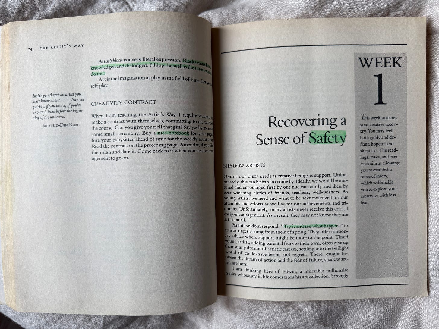 Its two central practices have become near-mythical: Morning Pages (three longhand pages of stream-of-consciousness writing every day) and the Artist’s Date (a weekly solo adventure with your creative inner child).