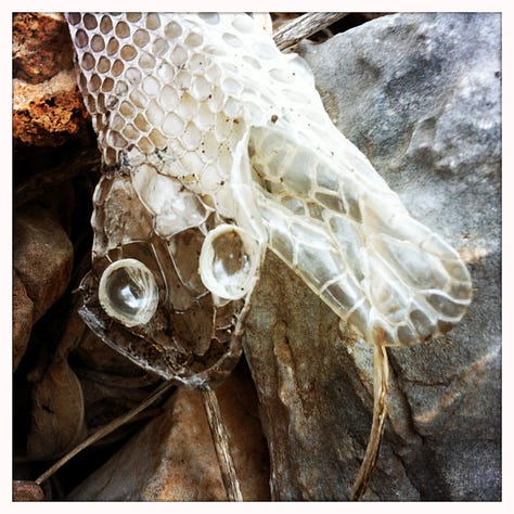 One afternoon we hiked into the scrubland and found the papery ghost of a snakeskin. In that strange place, I opened The Artist’s Way for the first time, as if trying to shed a skin of my own.
